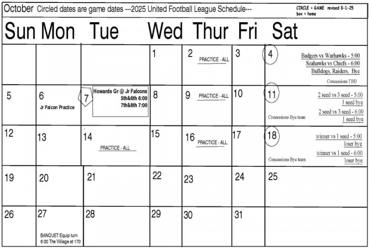 The Sheboygan Falls United Football League aims to teach young people the values of: Teamwork, Discipline, Effort, Sportsmanship, Courage, Sacrifice, Dedication, Citizenship, Fair Play, Respectfulness, and Toughness through spirited competition in the excellent game of football.
