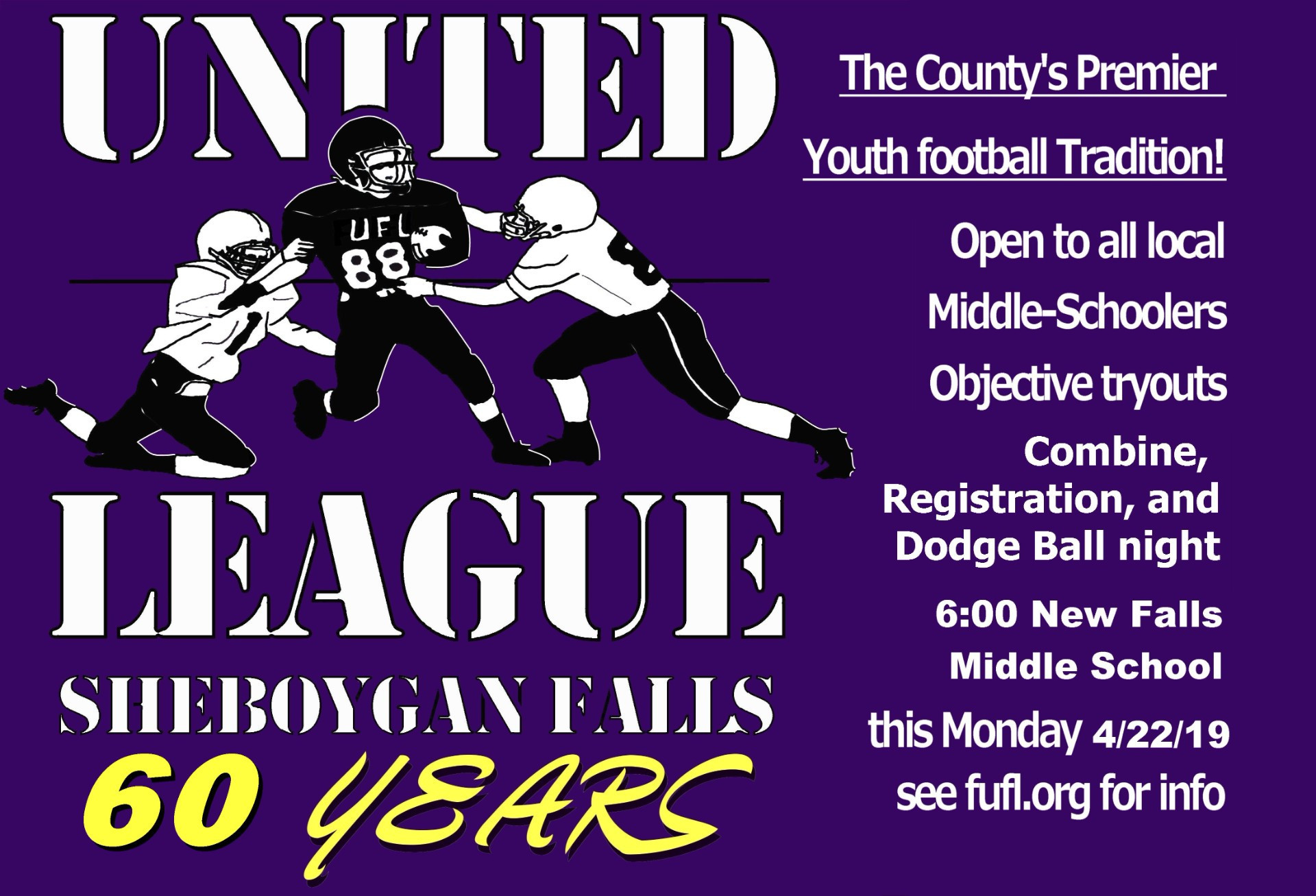 "The UFL is the ultimate opportunity for any Sheboygan youth football player. No county program has more tradition or participation!"